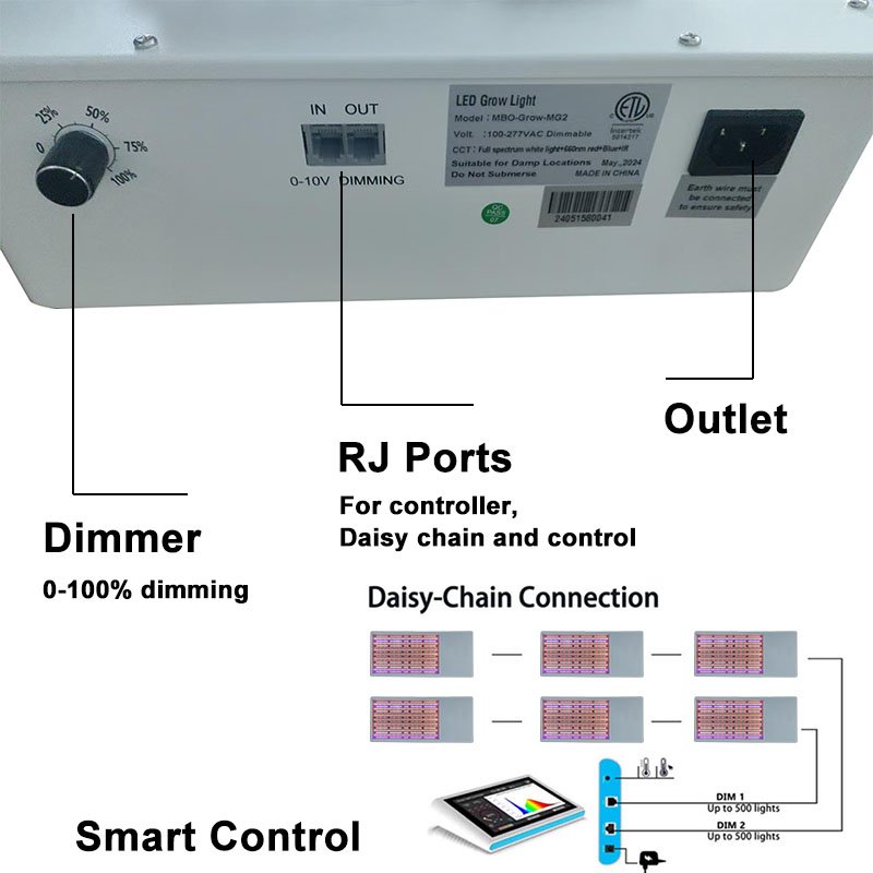 - Compatible with our smart control to simulate "Sunrise / Sunset" simulations and crop-specific light recipes that appeal to high-end boutique growers